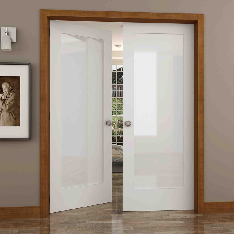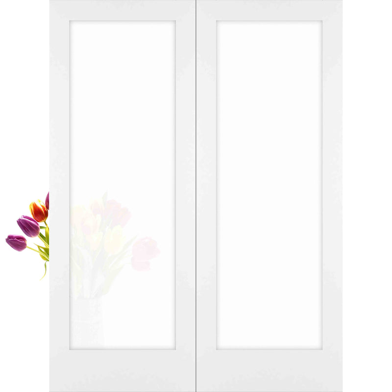 Shaker French 1-Lite Privacy Glass Pine Wood Interior Door Slab - Primed