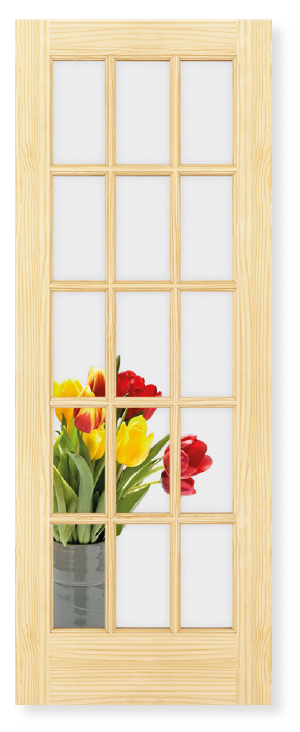 French 15-Lite Clear Glass Pine Wood Interior Door Slab - Clear Pine