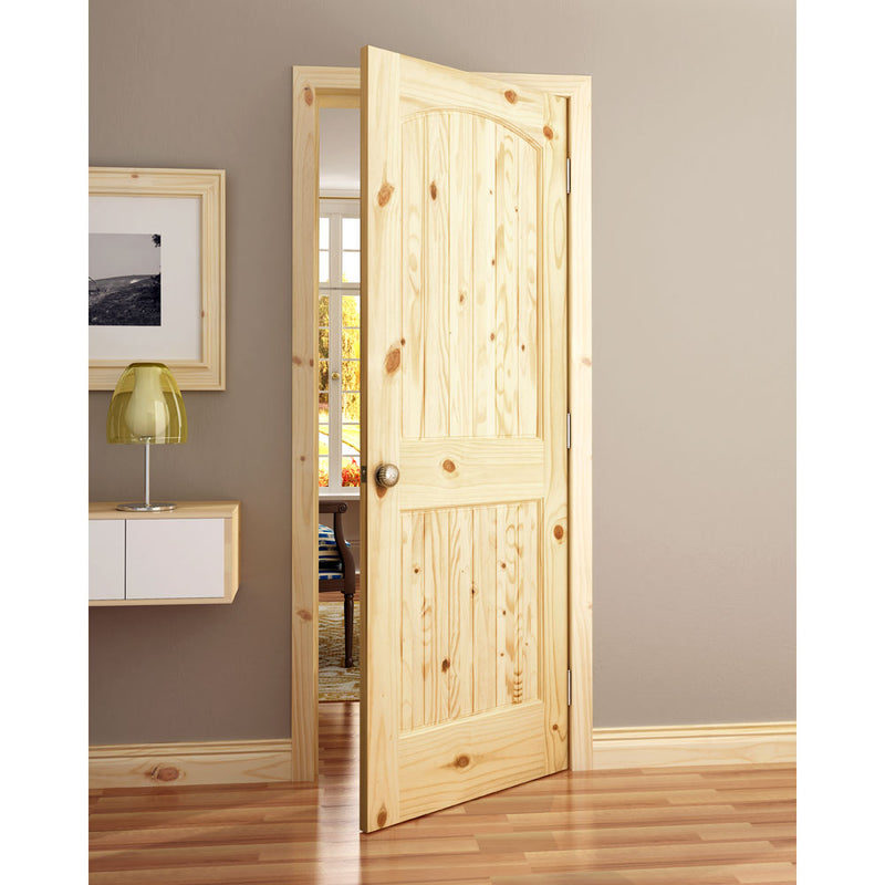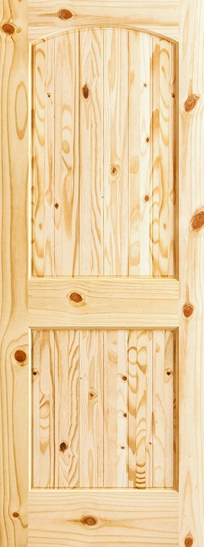 Colonial 2-Panel Arch Top V-Grooved Pine Wood Interior Door Slab - Knotty Pine