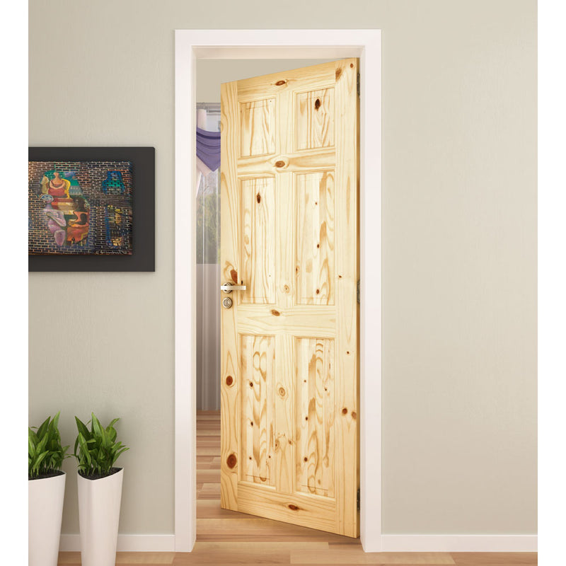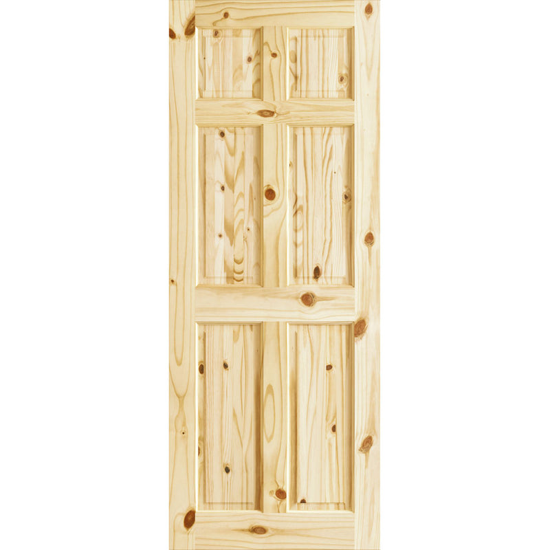 Colonial 6-Panel Pine Wood Interior Door Slab - Knotty Pine