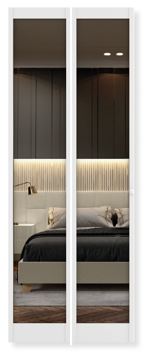 Mirror Pine Wood Bi-fold Interior Door with Hardware - Prefinished White